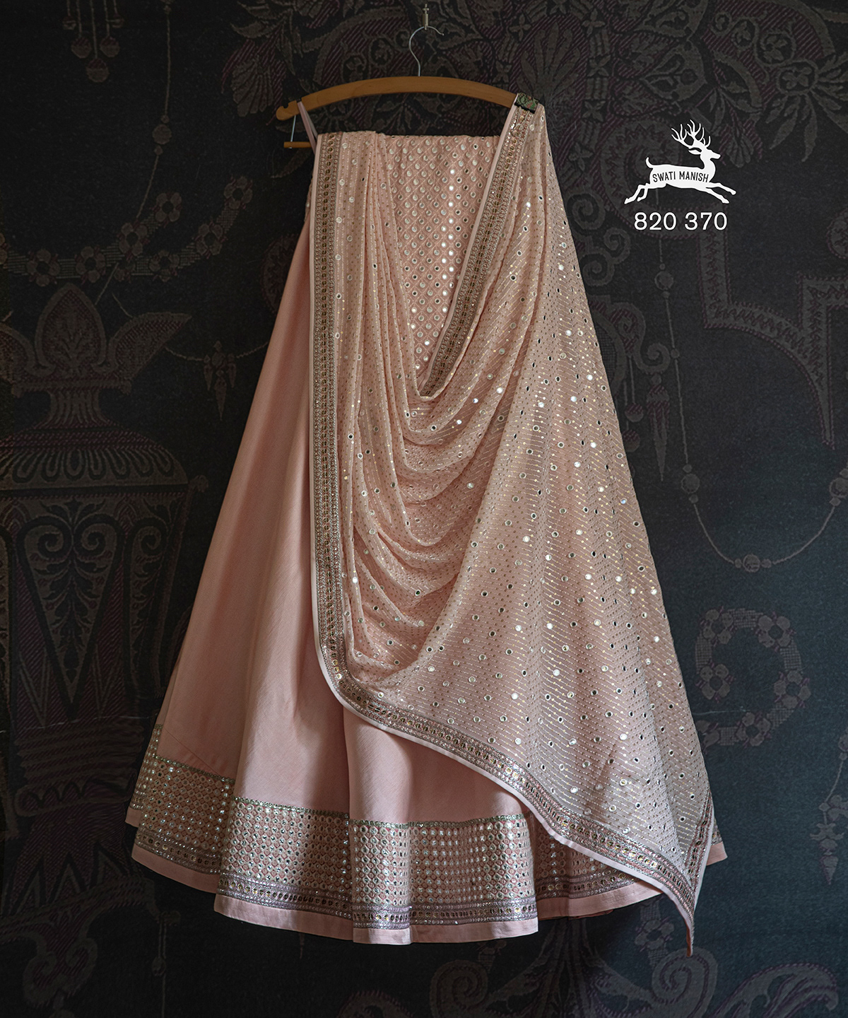 SMF LEH 820 370 | Pink satin linen thread work faux mirror Lehenga with matching chinon dupatta and georgette blouse